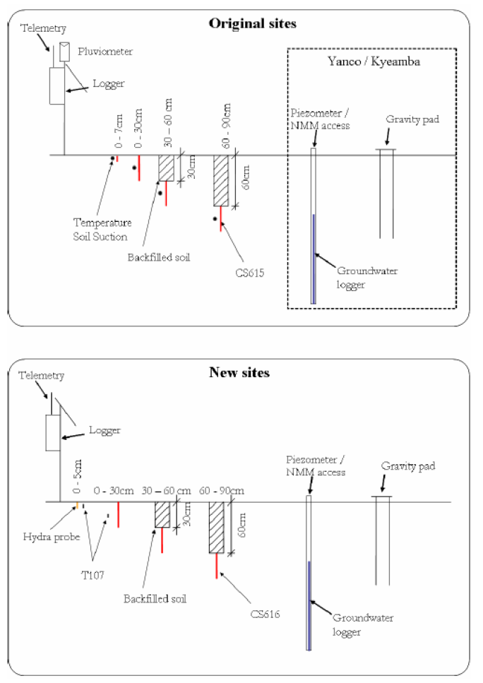 Typical equipment at the original (2001) and new (2004) soil moisture sites in the Murrumbidgee catchment